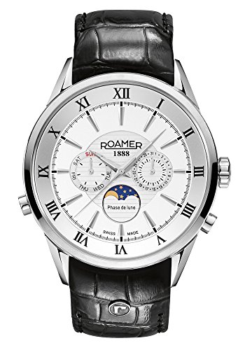 - Roamer Superior Moonphase Men's Quartz Black Leather Strap Watch